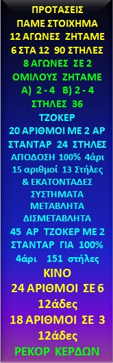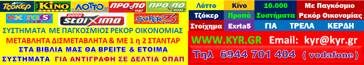 ΣΥΣΤΗΜΑΤΑ ΟΛΩΝ ΤΩΝ ΚΑΤΗΓΟΡΙΩΝ ΜΕΤΑΒΛΗΤΑ ΔΙΣΜΕΤΑΒΛΗΤΑ ΜΕ ΖΗΤΟΥΜΕΝΑ ΠΑΡΑΓΩΓΑ ΓΙΑ 100% 14άρι 100% 13άρι |
